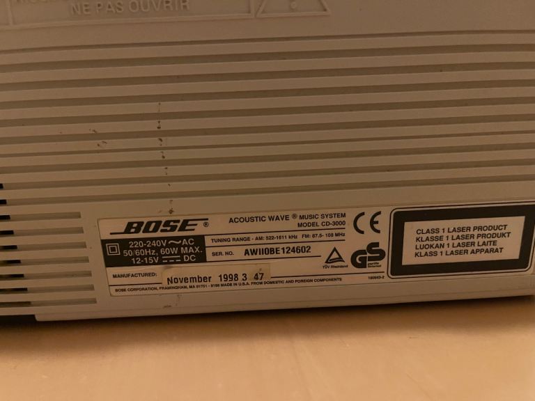 Bose music system model CD3000, music/AM/FM radio/CD player