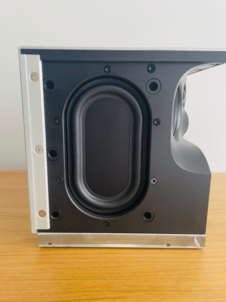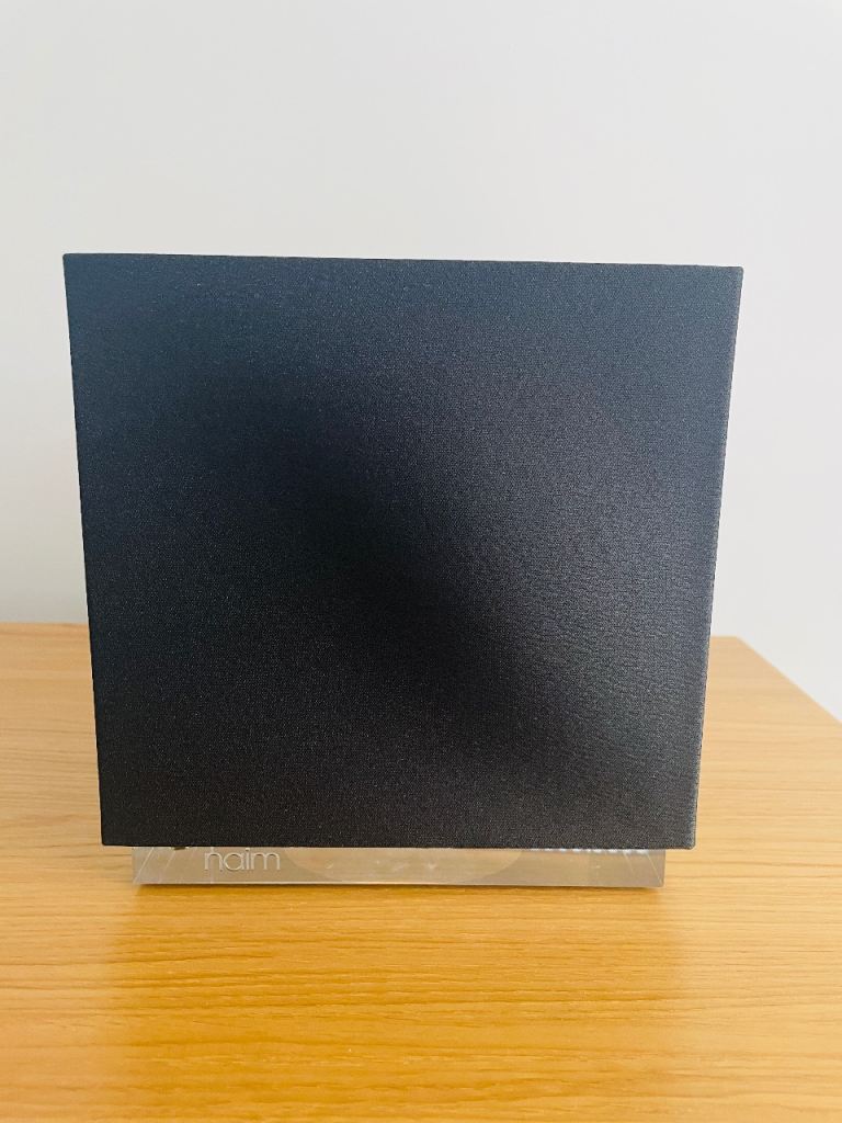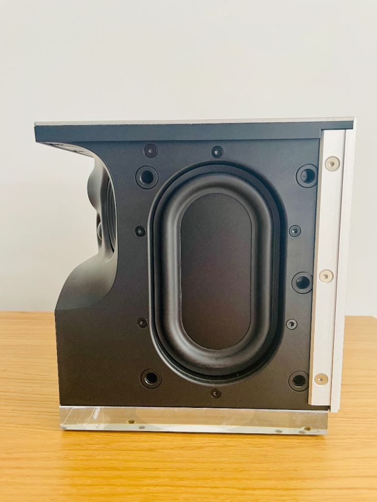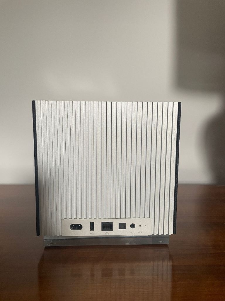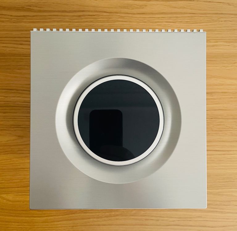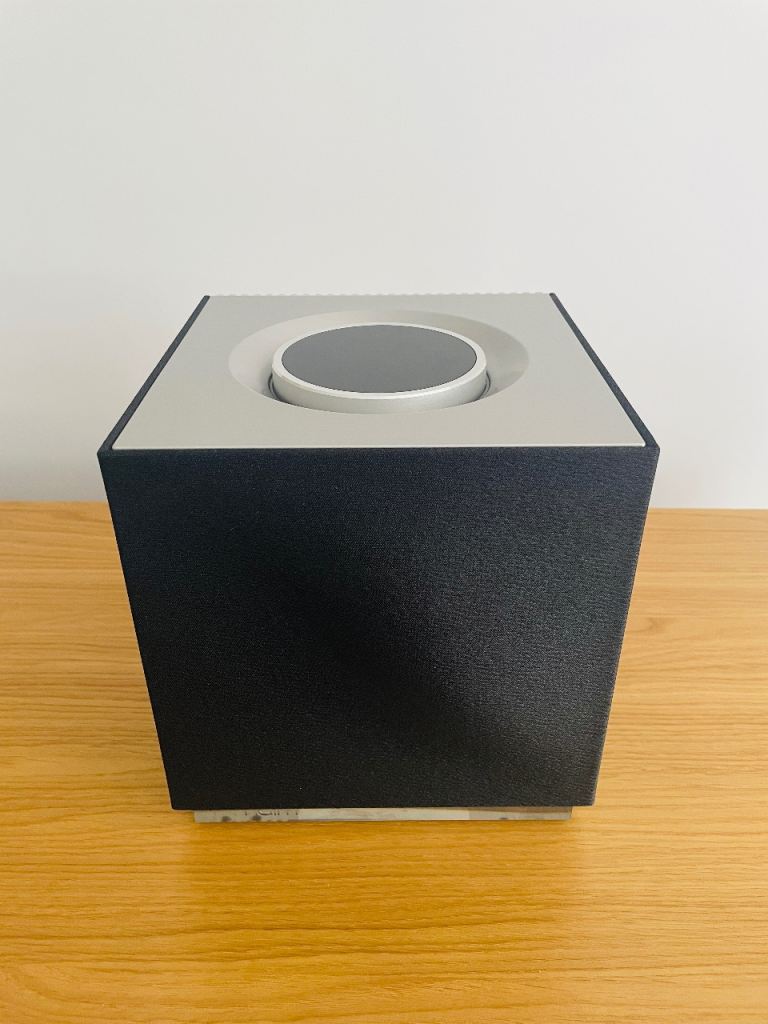 Distinctive cubed shape with a brushed aluminum body, illuminated volume dial, and interchangeable grilles. Mine is the black standard grille.