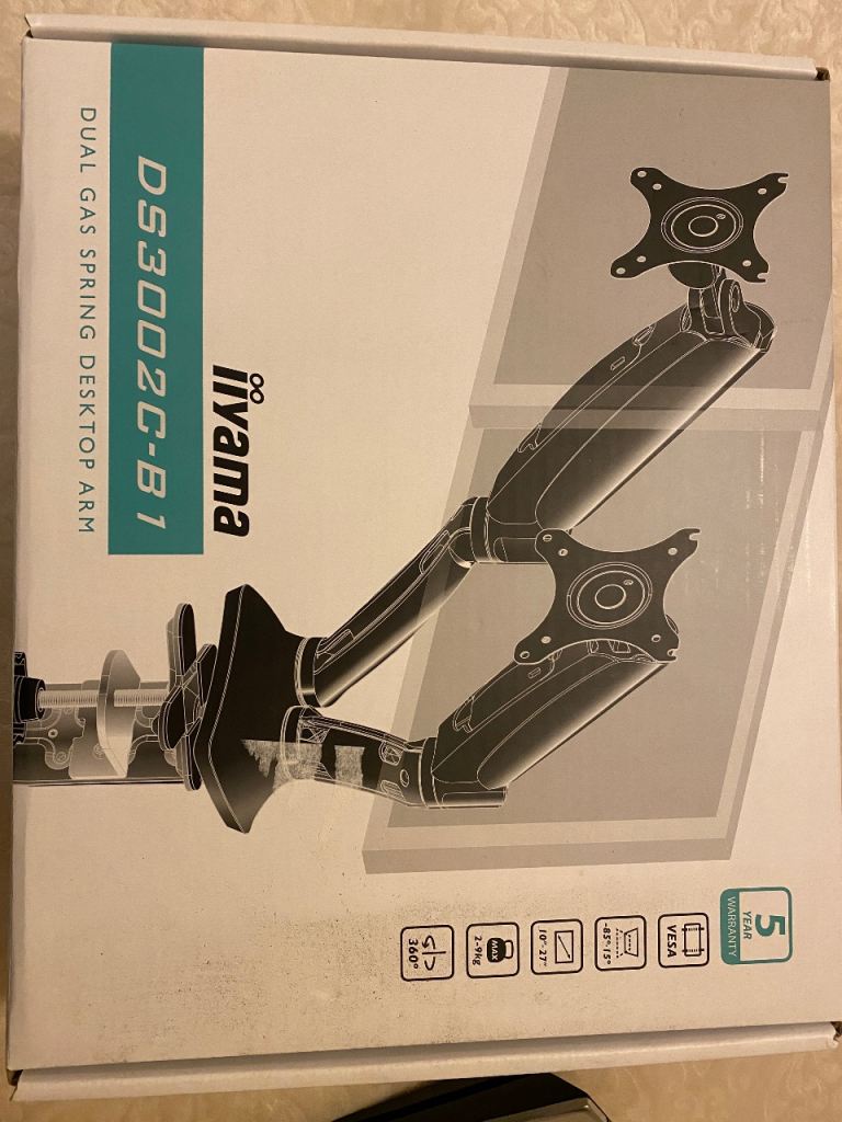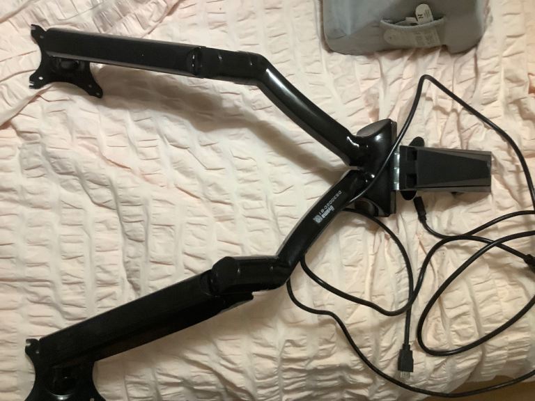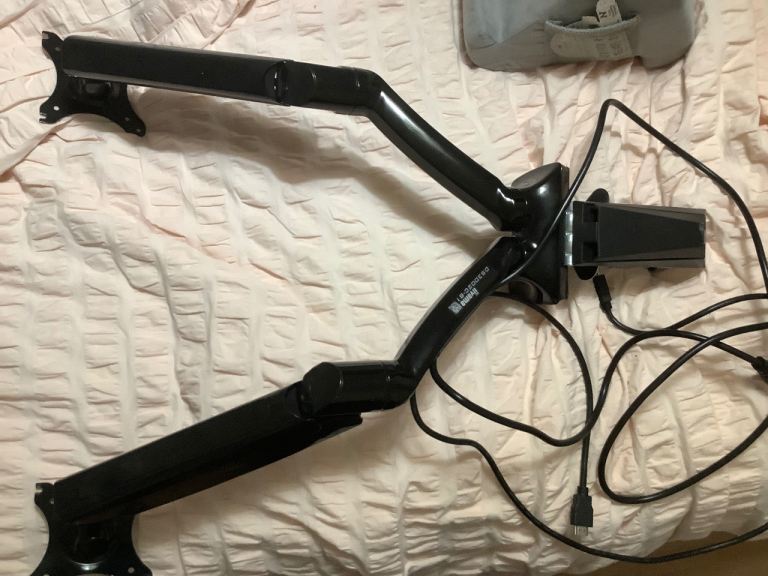 Posting for 11+ yearsMonitor Arm, dual gas spring desktop arm, VESA mount up to 27” monitor size 2-9kg, 360 swivel
