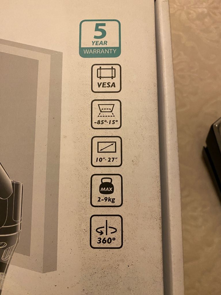 VESA mount for monitor sizes 10” up to 27” and 2-9kg max.