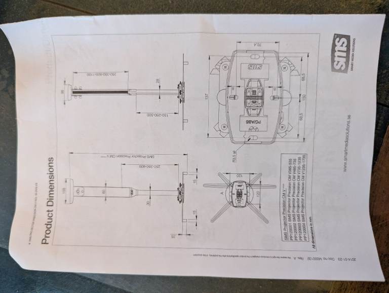 SMS PP120003 Projector Precision CM V CMV735-1235 Telescopic Mount