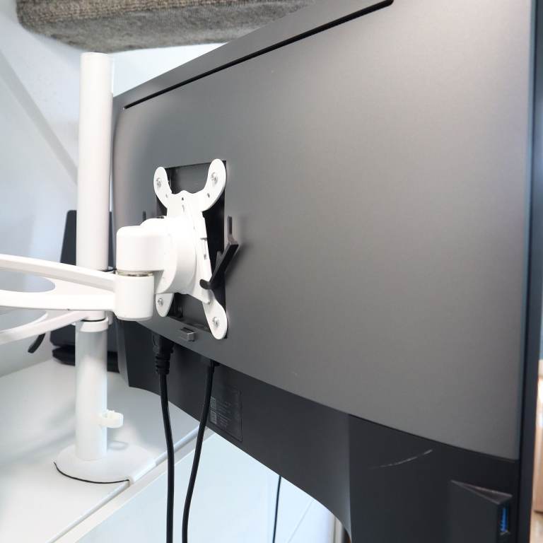Fully working monitor with a beautiful, vivid screen and four side zero-frame design. Will be sold on a desk mounted arm as pictured. Comes with power cord and HDMI cable.