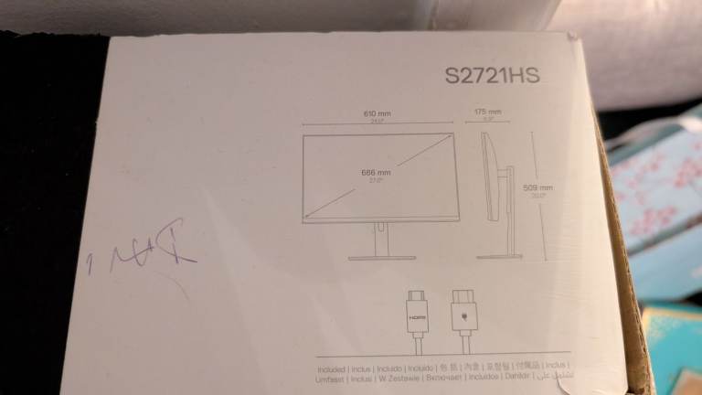 2 Dell 27" monitors for sale - well looked after and in the original box with stand/power cable.
