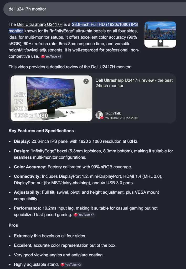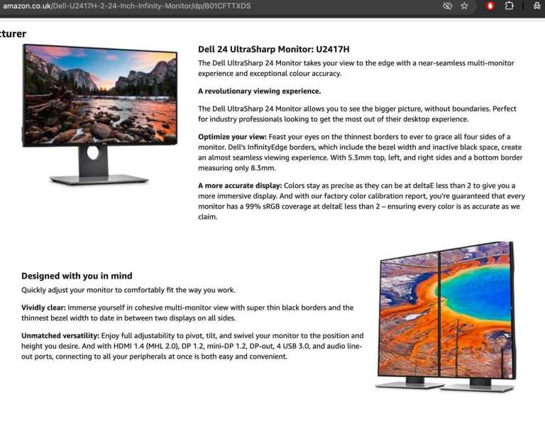 2x Dell UltraSharp 24" Full HD Monitor InfinityEdge, IPS Screens U2417H