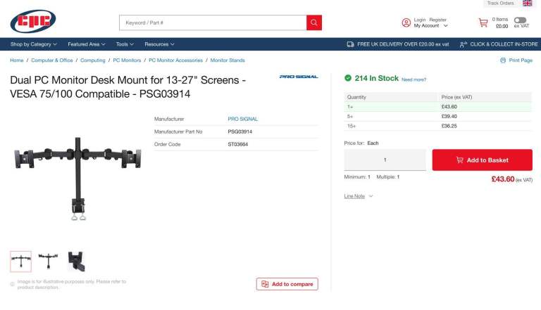 They come with a brand new "ProSignal" Dual PC Monitor Desk Mount for 13-27" Screens - VESA 75/100 Compatible
