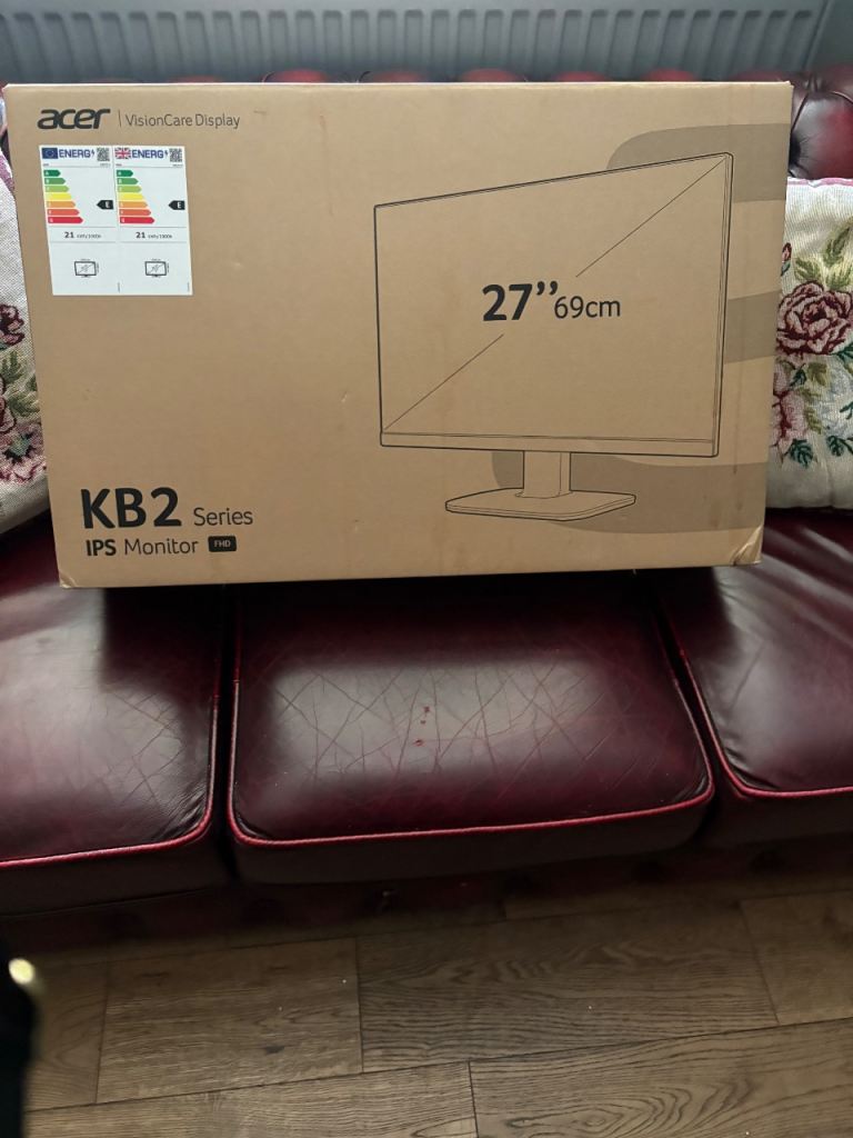 Nearly new Acer 27” monitor . Bought for spare room which is never used . Purchased from curry’s for £140 need room hence the sale