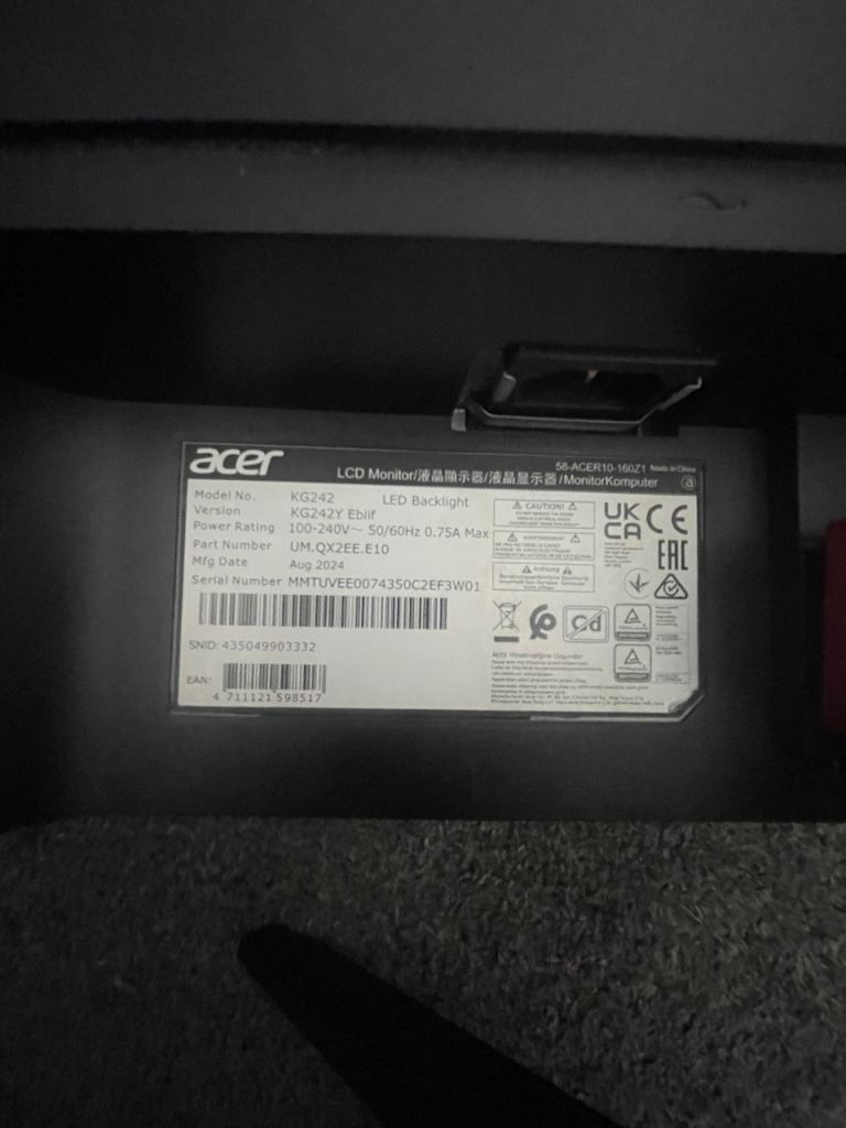 Posting for under a monthAcer Nitro KG242Y E 24-inch gaming monitor