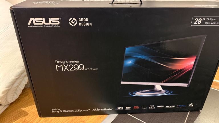 The MX299Q is a flagship ASUS Designo monitor that cost £400+ when new—built to a standard that budget monitors simply can’t match. This isn’t a generic office display; it’s a precision-crafted piece of hardware with premium materials and audiophile-grade sound.