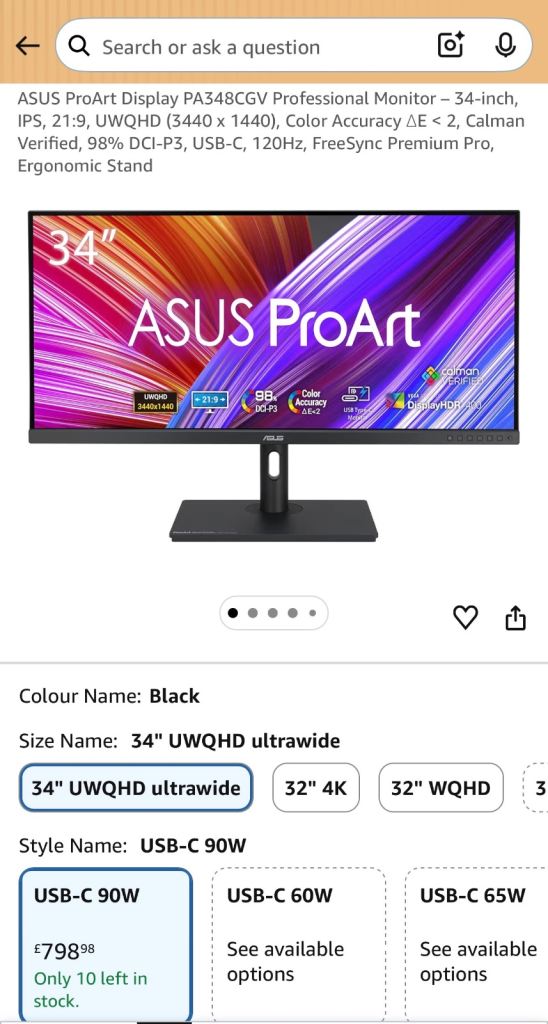 Posting for under a monthASUS ProArt PA348CGV 34” Professional Monitor – New