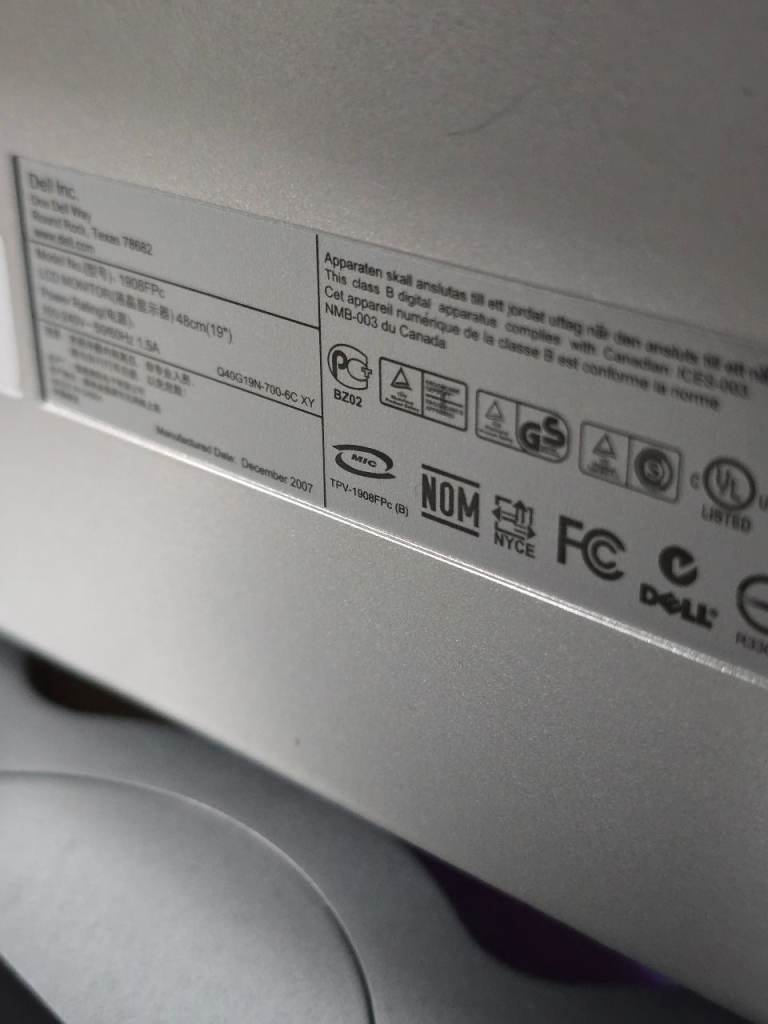 Posting for 2+ monthsDell 1908FPc 19” LCD Monitor – 60Hz – Very Good Condition + VGA Cable