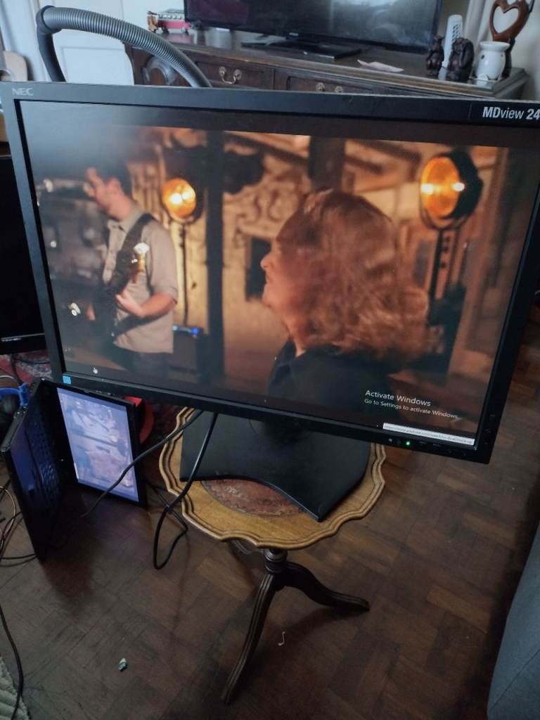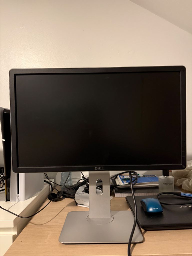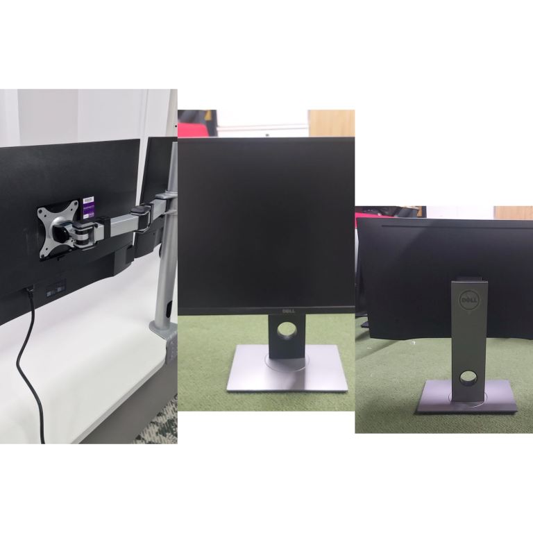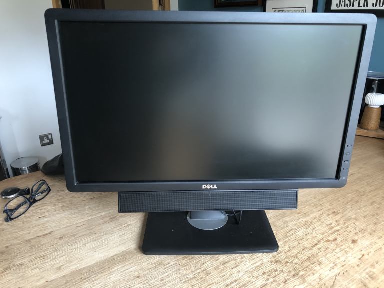 Dell 22 inch monitor P2212H monitor with optional sound bar. adjustable height and will rotate 90 degrees. Has built in usb ports.. DVI-D and vga video ports.