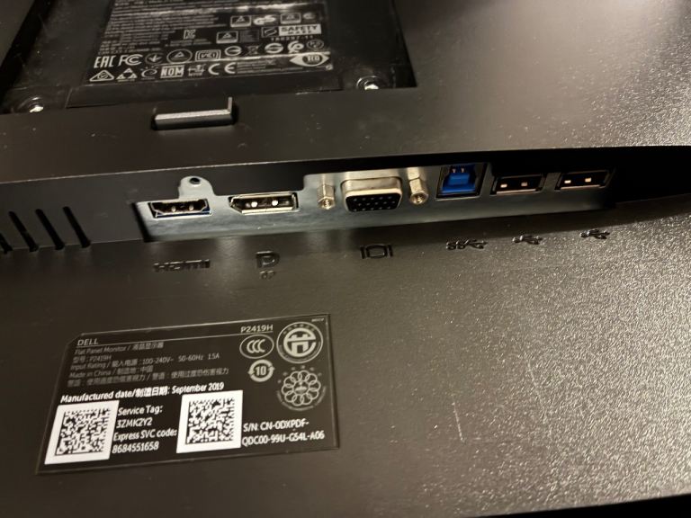 Dell computer monitor (model P2419H) in great condition. Works perfectly with 0 faults. There is a very small scratch as pictured, but it’s barely visible in normal operation.