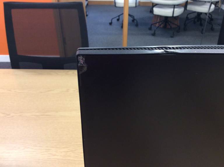 There is damage to the screen. It still turns on, but it's no longer usable.