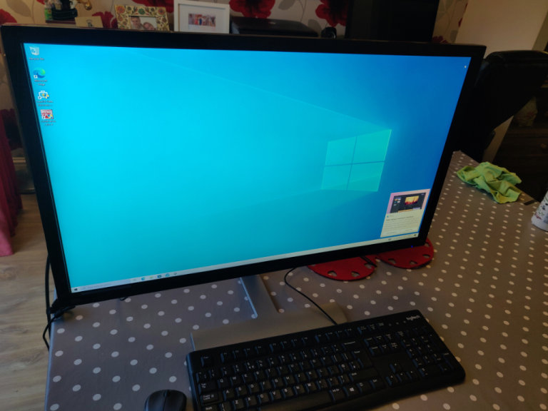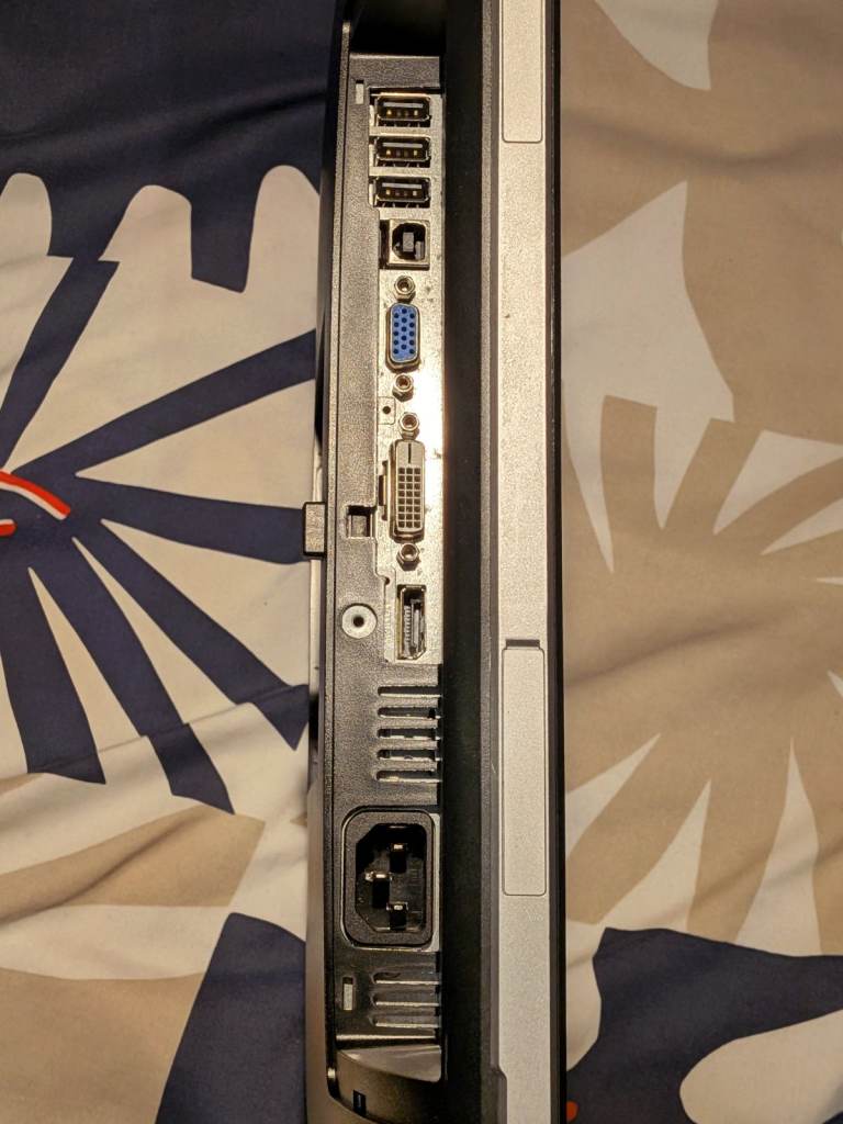 Rarely used HD LCD Monitor. 90' monitor screen rotation. Adjustable tilt. Includes VGA to HDMI cable and IEC C13 power cable. Please let me know if you need any more information.