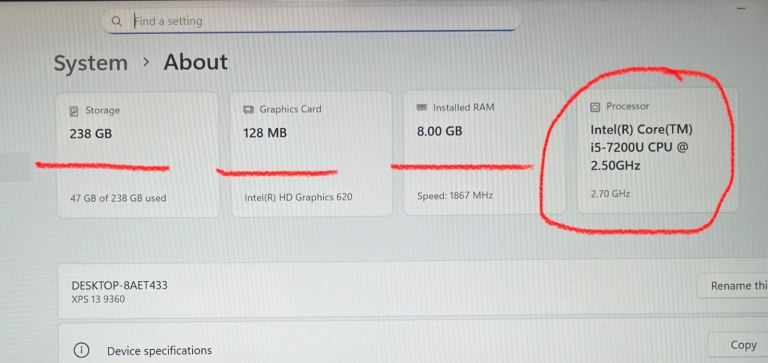 13.3” Screen, Intel i5-7200 Processor, 8GB Ram, 256GB NVME, Webcam, Backlit Keyboard