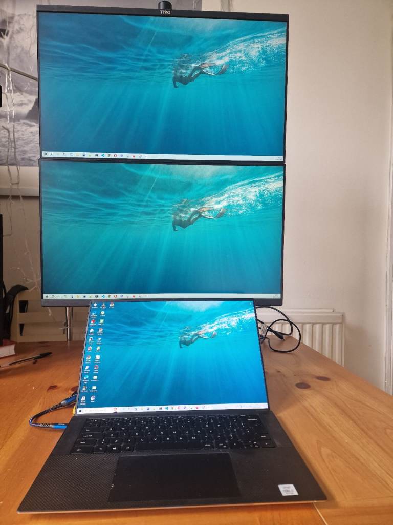 Selling a dual Dell P2419H monitor setup with a vertical stand – perfect for coding, trading, design, or saving desk space.