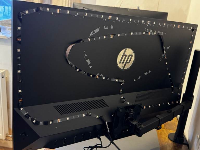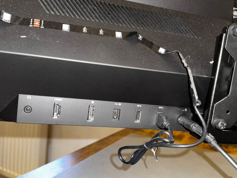 Selling as no longer needed. Works flawlessly and still very good for productivity and gaming. Note that there are LED strips installed on the back which I can remove and clean up. Comes with all original accessories but no packing. Also comes with a monitor arm mount with all tools and cables.