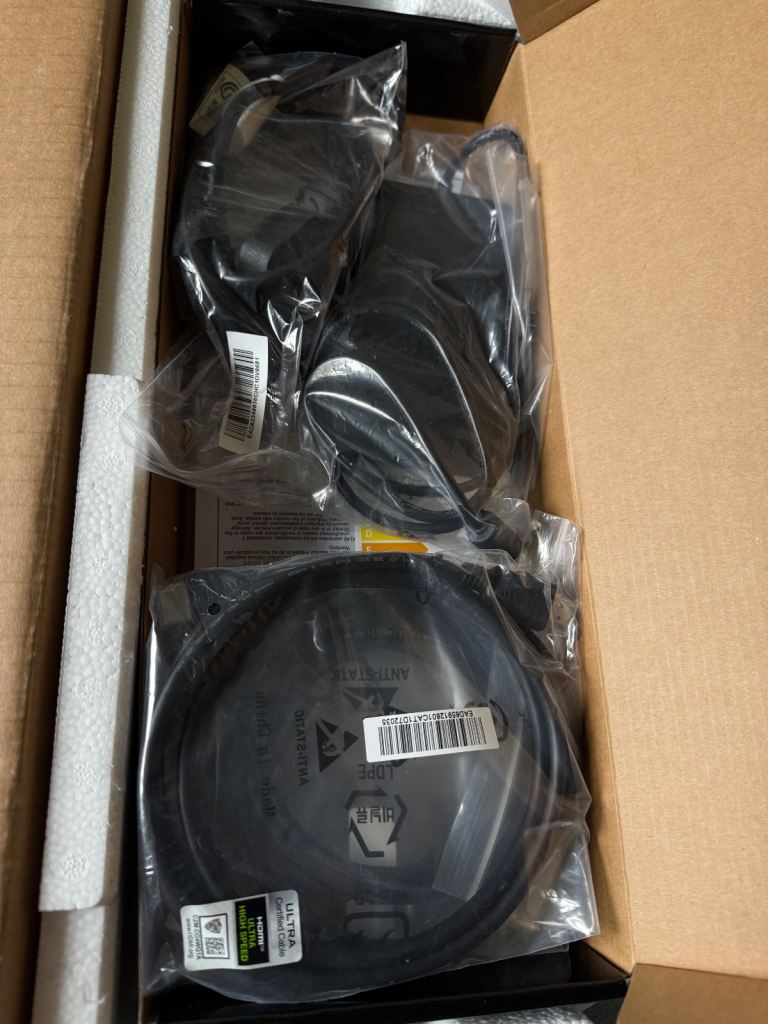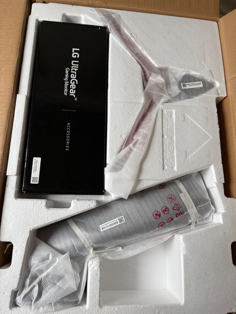 It comes with the original packaging and new condition accessories and stand, (as I’ve been using a VESA mount, and didn’t use the supplied cables).