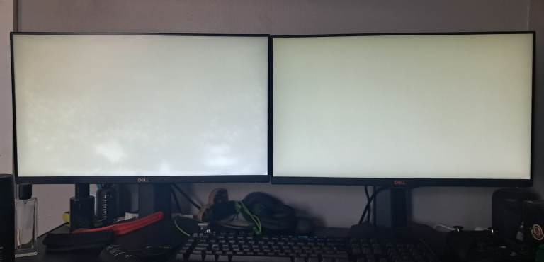 One monitor has some bright spots as seen in the white diagnostics picture. It's not that noticeable and when it is it's usually when screen is displaying bright white.