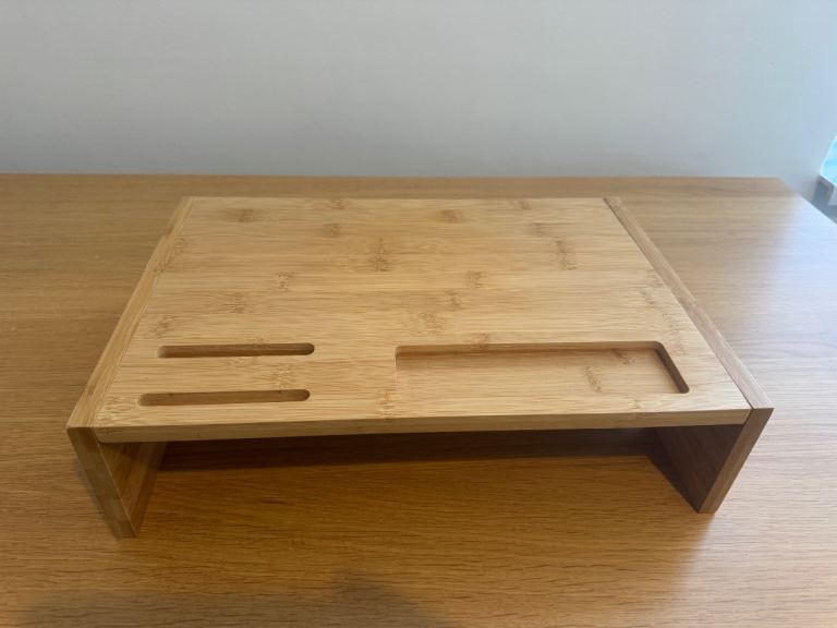 Excellent condition - like new. Selling due to moving abroad. Smoke and pet free home. No box but superb condition. Comes with cables. Monitor stand (bamboo, pine colour) - extra £10