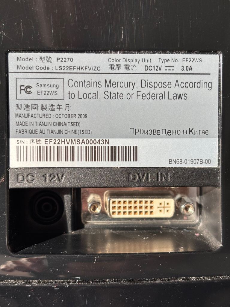 Samsung 22-inch SyncMaster P2270 Monitor DVI Input