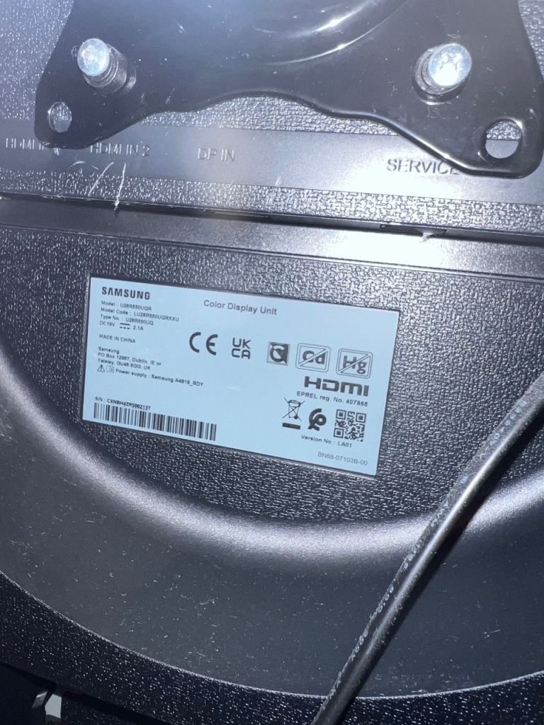 Selling my Samsung U28R550UQR 28-inch 4K monitor in dark grey/blue. Great for working from home, watching films, general use, and sharp 4K display quality.