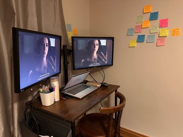 Selling two Samsung S24E650DE monitors with a dual monitor arm. Both monitors work perfectly and have clean screens. The monitor arm is sturdy and holds both screens well. Great for a clean and efficient workspace.