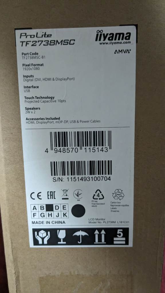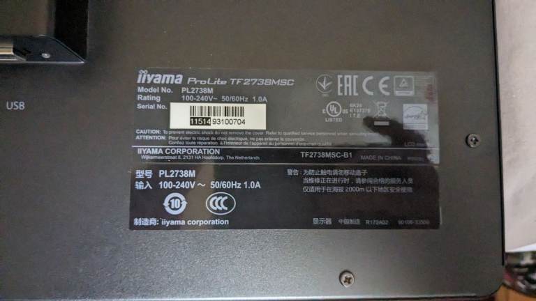 Posting for 13+ yearsTouch screen monitor Prolite TF2738MSC-2