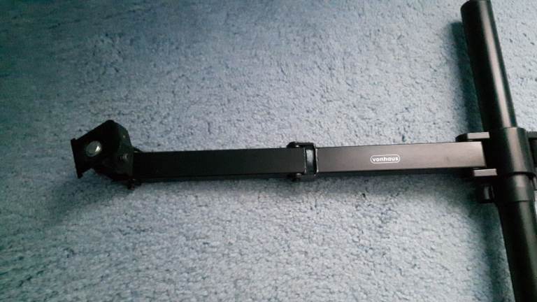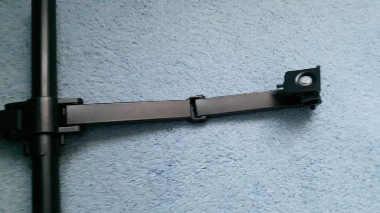 Been used, in very good condition but does have some scratches here and there from use, tested and fully working. This stand attaches to a desk and can mount 2 monitors, all the cabling can be put through the various cable clips attaching all of the cables to the stand. Price to clear.