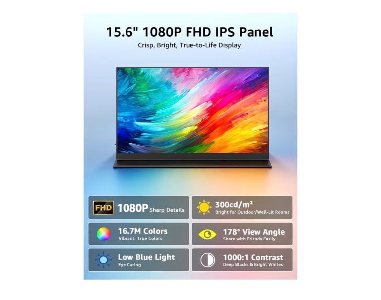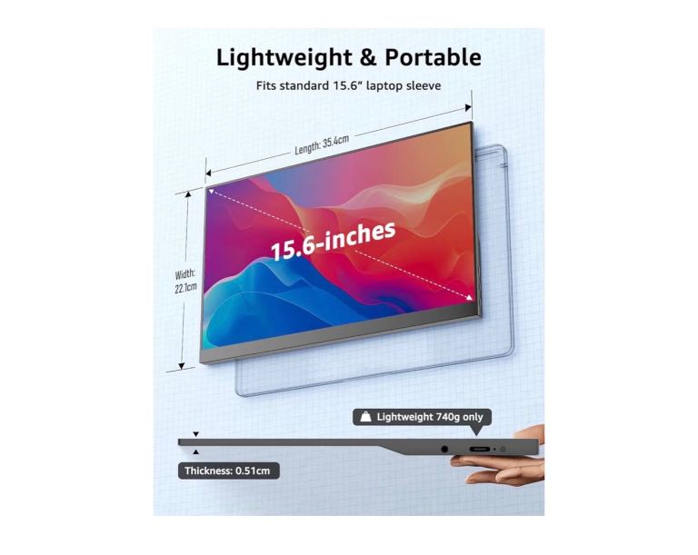 Yodoit Portable Monitor 15.6" FHD 1920x1080P IPS Display | USB-C & HDMI Connectivity, Built-in Speakers, with Smart Cover, for Laptop, PC, Mac, PS3/4/5, Xbox