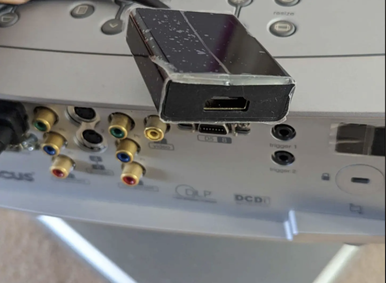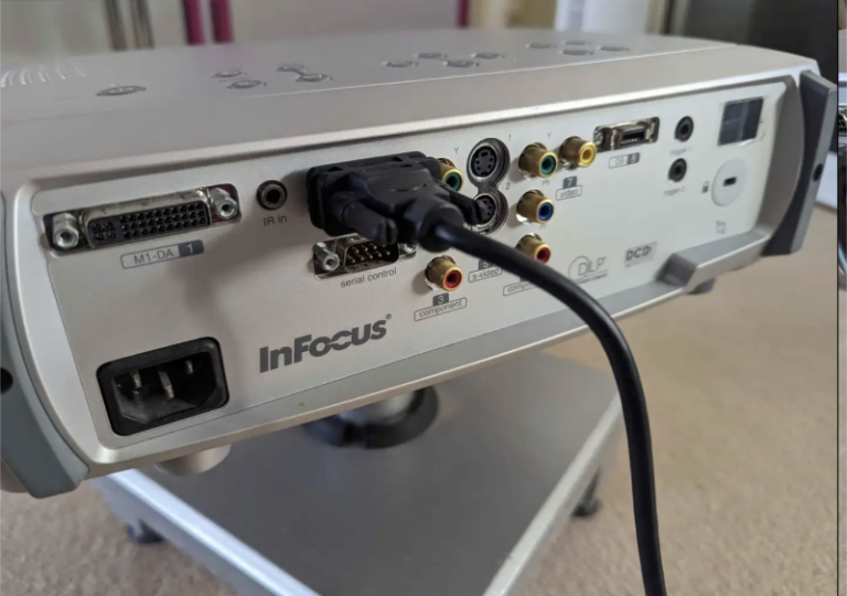 Video projector inFocus 5700 with VGA to HDMi adapter to watch High definition movies or sports on the big screen.
