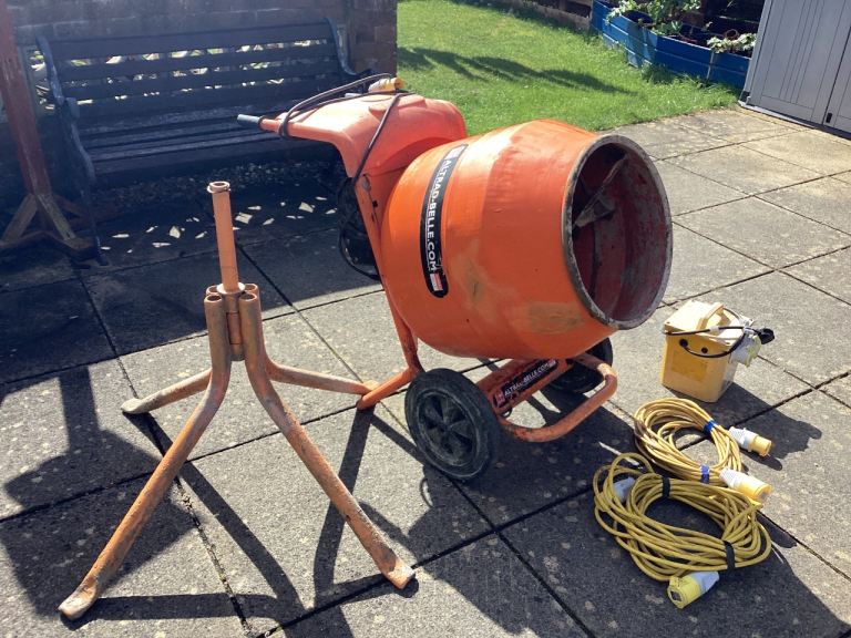 Altrad-Belle Minimix 150 cement mixer is in great condition starts and runs no problem, Oil been checked drum is solid also comes with a stand + 110v transformer and two 10 metre extension cables Ready to go to work. £290