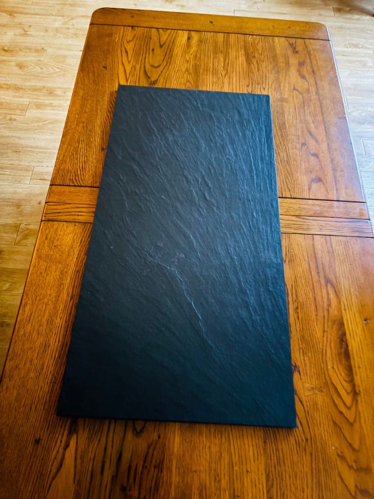 These are superior quality slates for Buffets, Displays and Sharing platters. . Made from durable slate, this large rectangular heavy duty board features easy clean properties and a sleek black colour. Measuring 60cms x 30cms x 8ml, it is the perfect size for buffets etc. This set includes three superior quality boards, . Padded bases.
