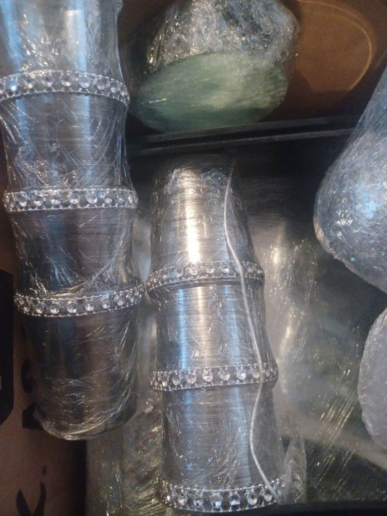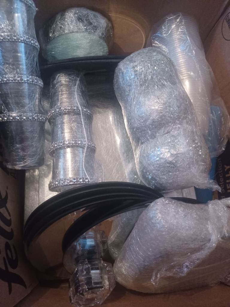 Very pretty vase's 3 different sizes,Crystals, flowers new boxed,square and circular mirror plates,candelabra and extras,stunning table deco