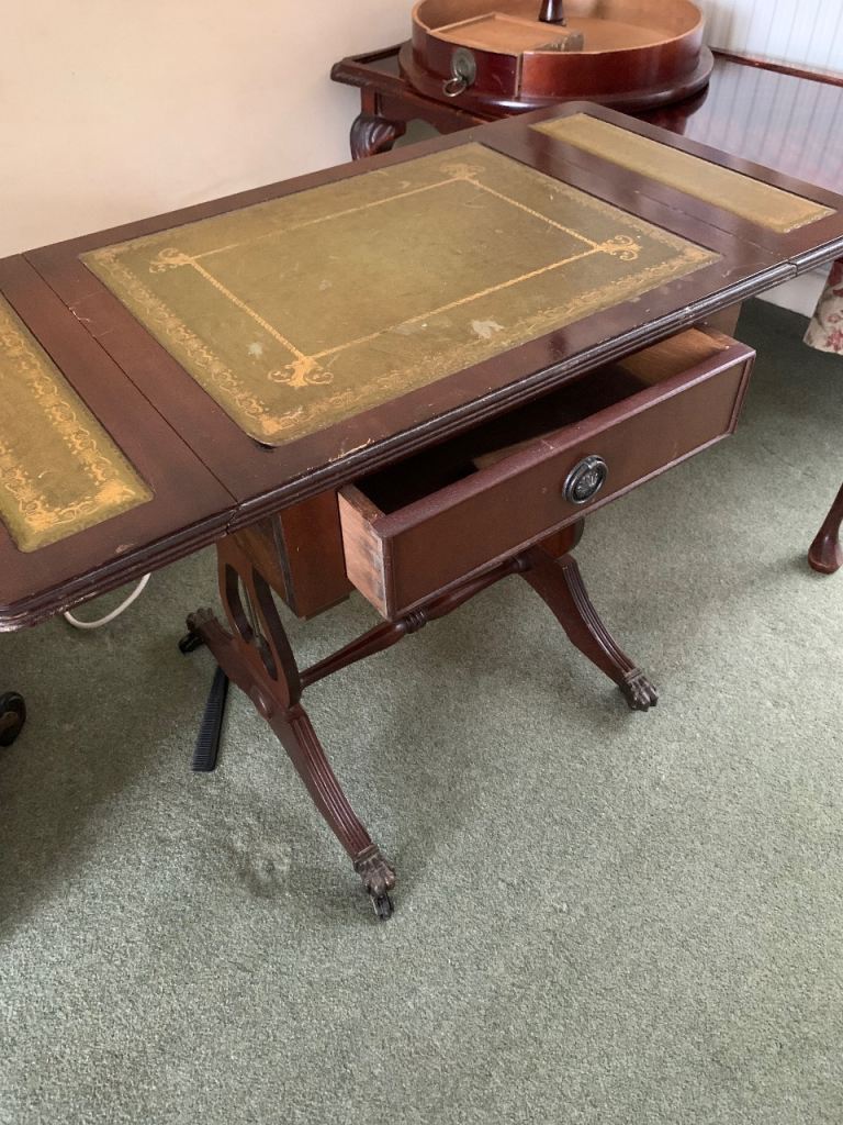 Condition is good for its age, showing some expected wear and patina on the wood and leather.
