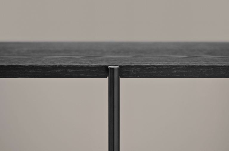 Black stained solid oak and metal frame.