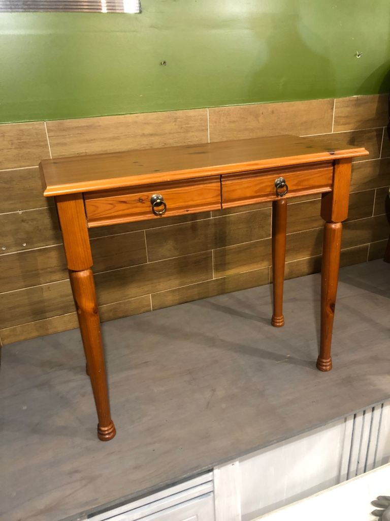 Classic pine vintage console table, hall table, dressing table with two small drawers