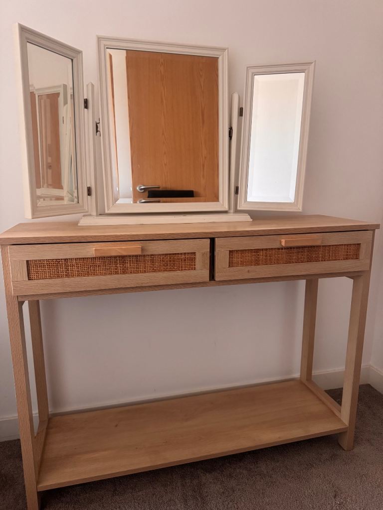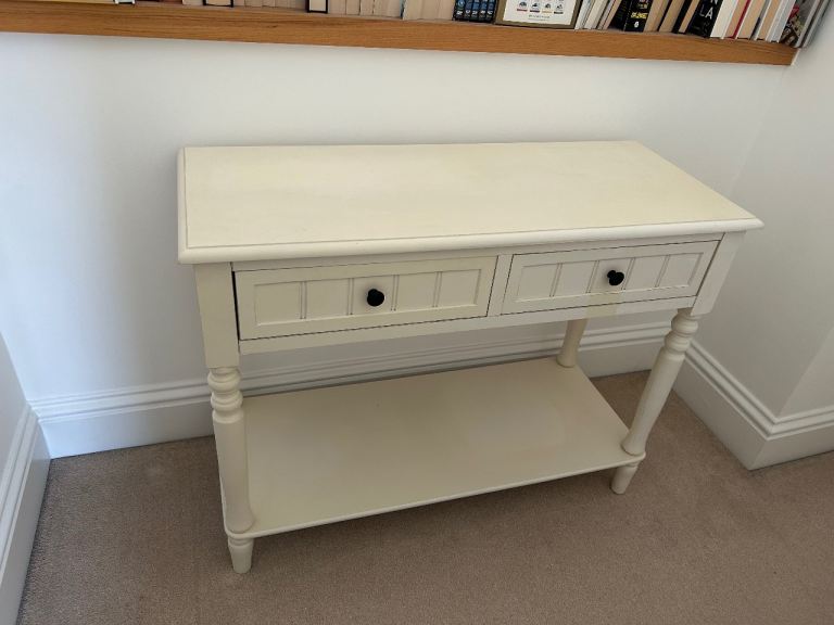 This table is sturdy and functional, nice for a hallway or living room.