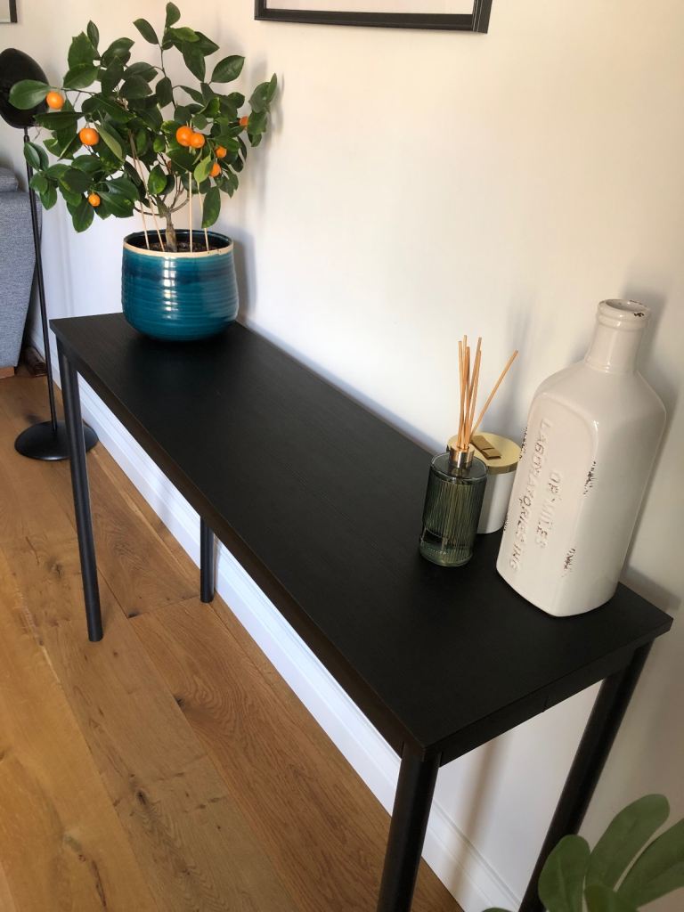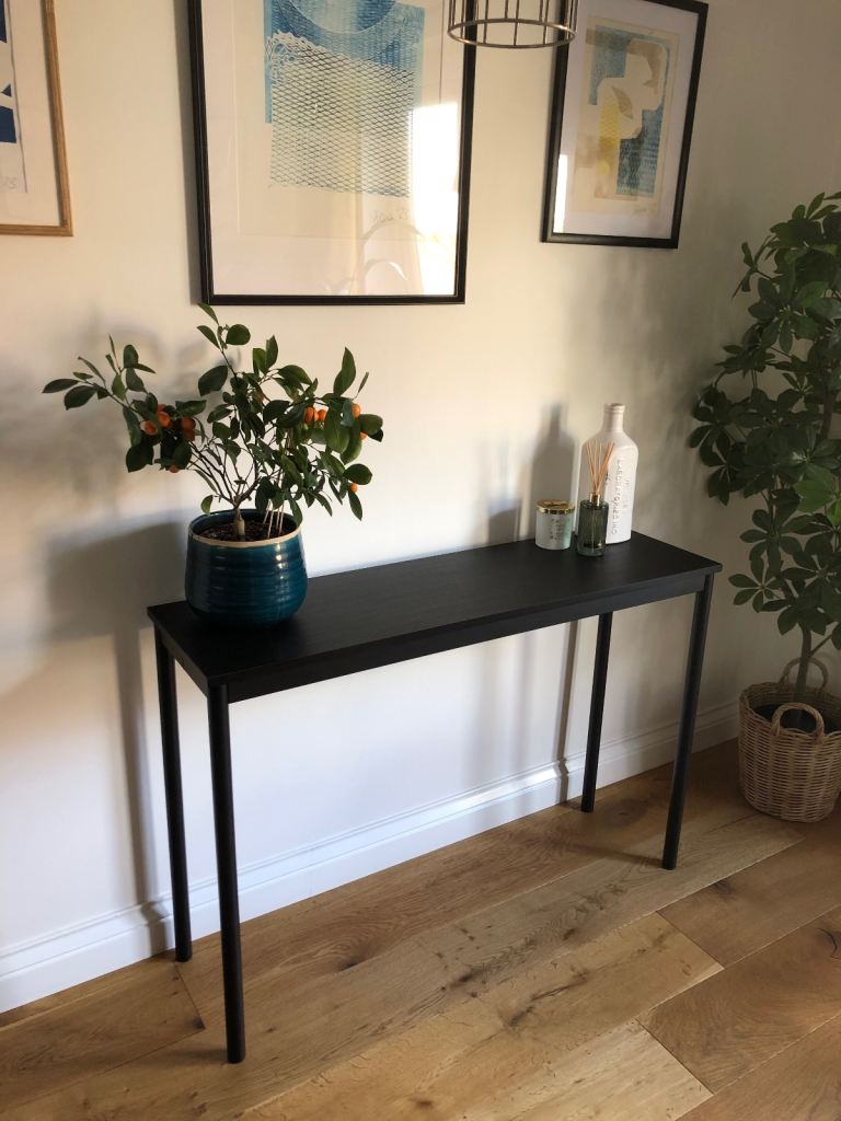 Black console table in excellent condition.