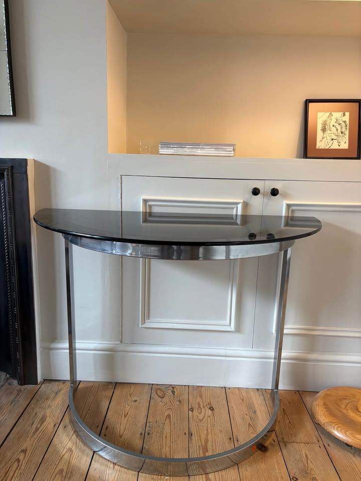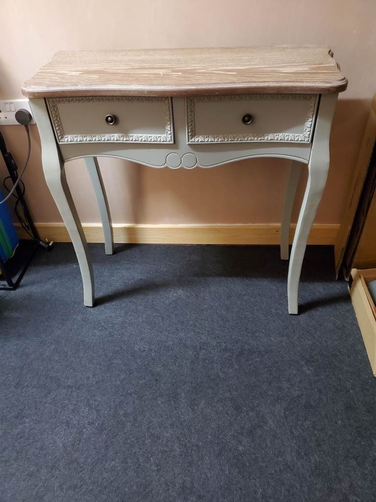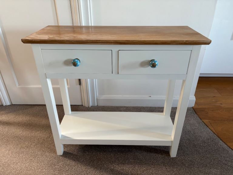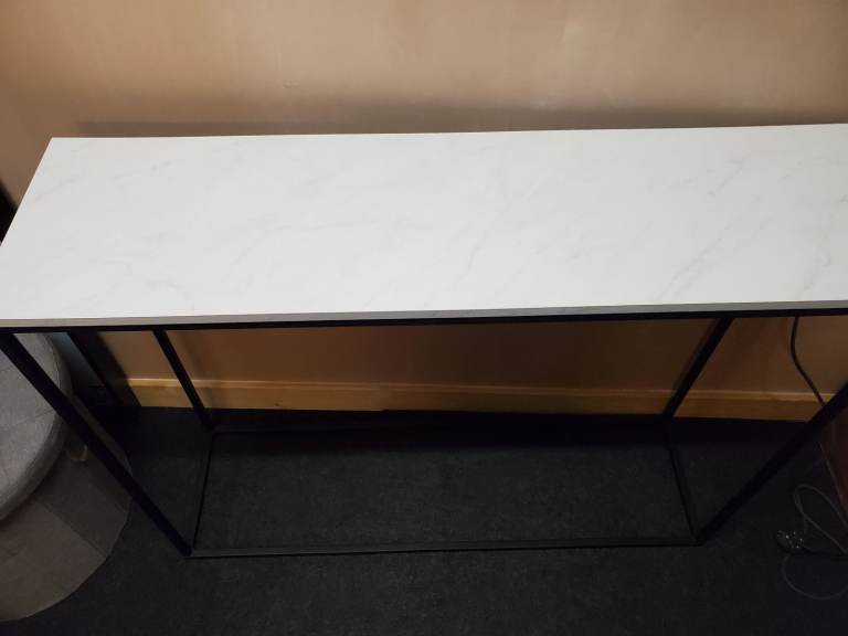 Bought new as a white marble top console table and is as good now as it was then. It has a black metal frame and is approximately 107 cm (L) x 30 (W) x 33 (H). Cash on collection or may deliver in the Grimsby area.