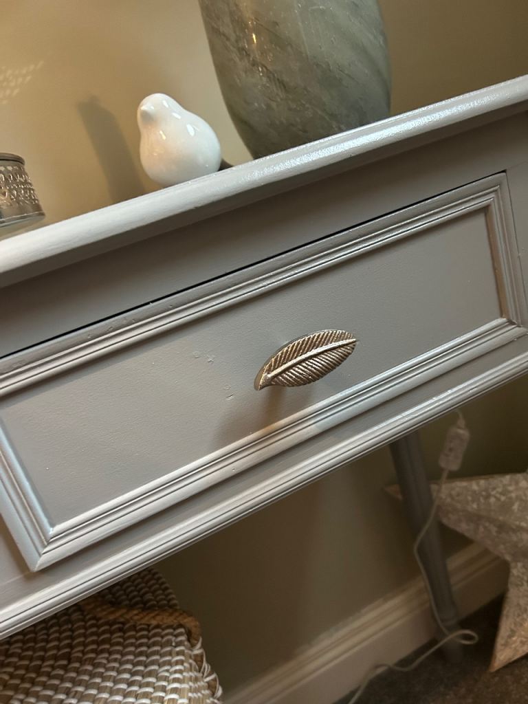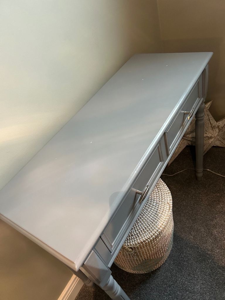 Console table. Painted farrow & ball Plummet, originally cream. Few paint chips to the top of the table, see last two photos. Could be re-painted in any colour.