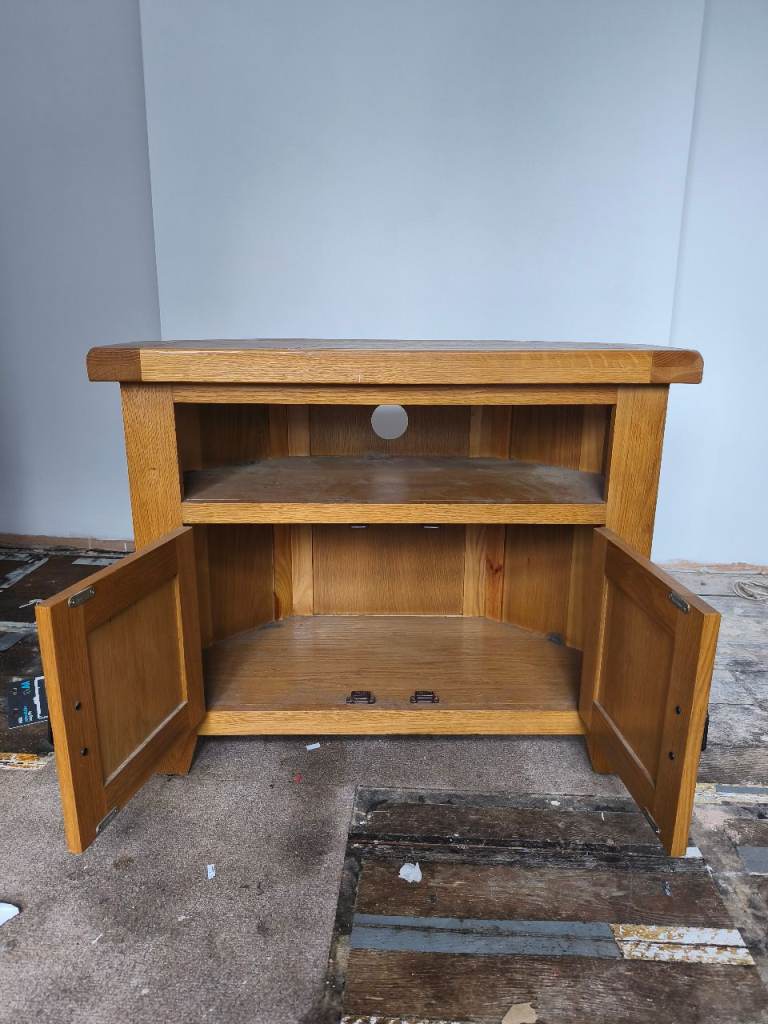 Wooden corner cupboard/TV stand. Good condition. 80cm wide, 65cm tall,
