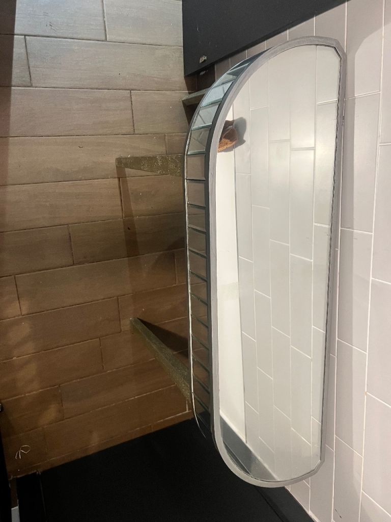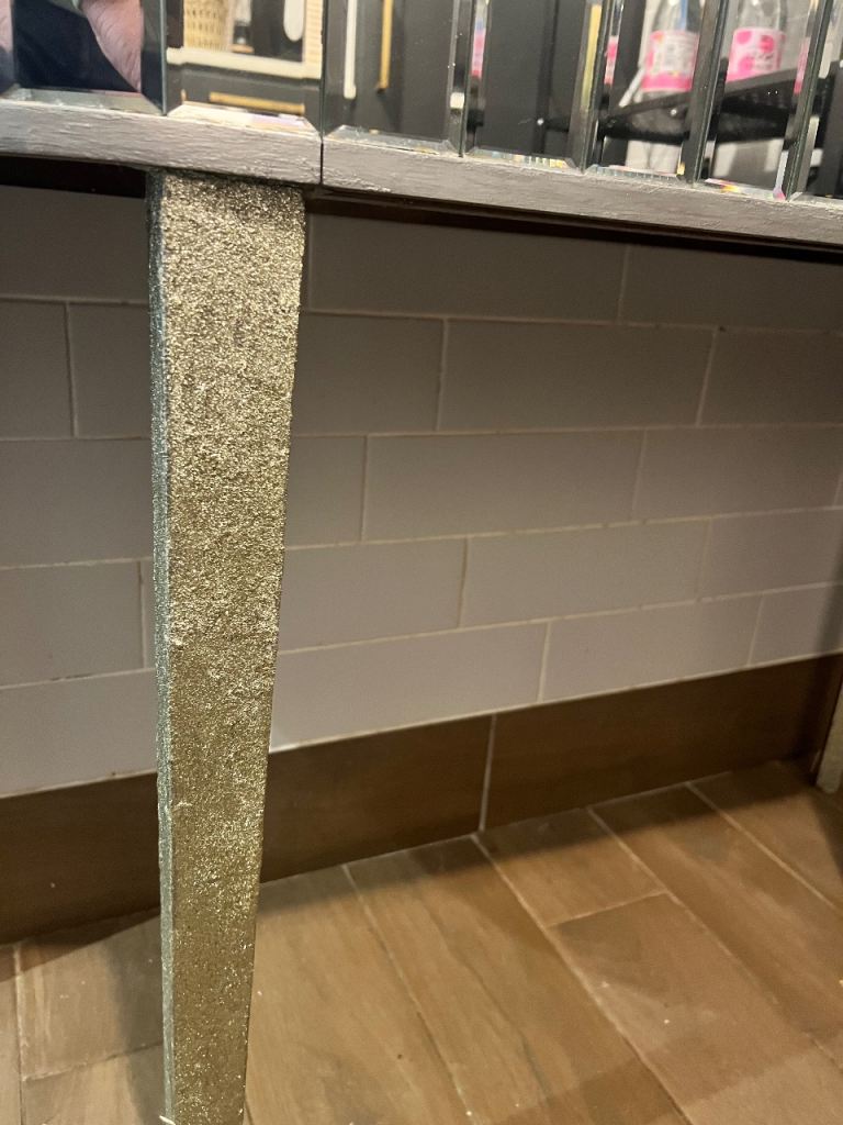 Glass slim table quite glitzy need a bit of attention but sturdy. Good up cycle opportunity