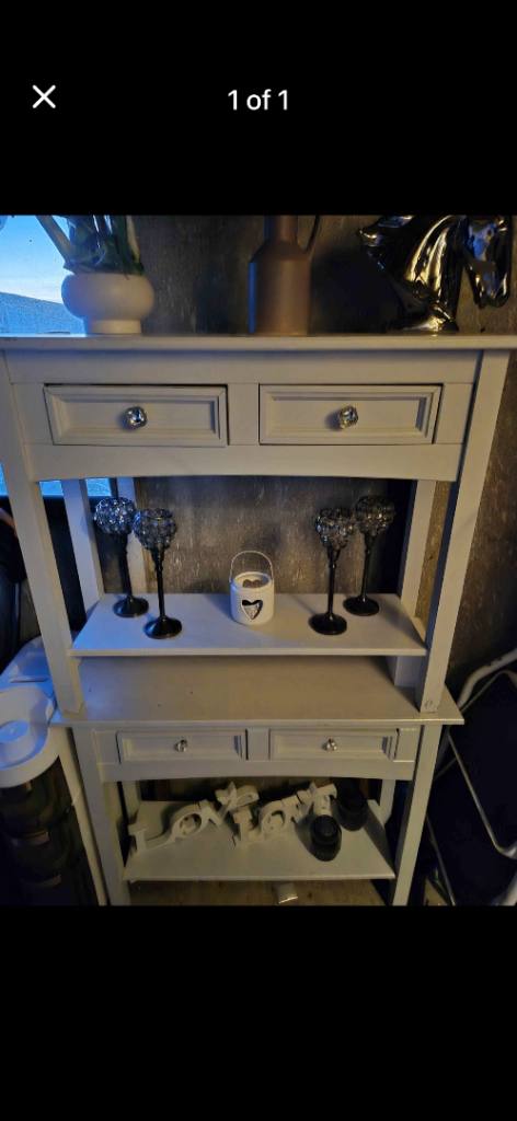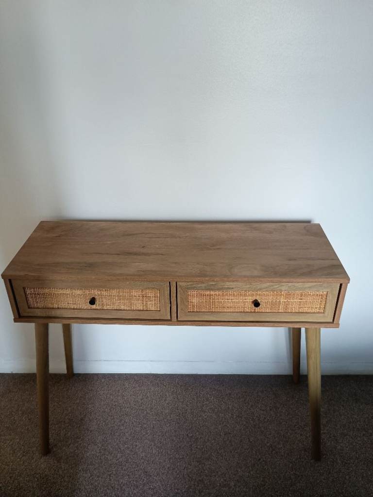 Large solid oak console table Width 140cm Height 81cm Depth 40 cm with lighting and cable management in good condition
