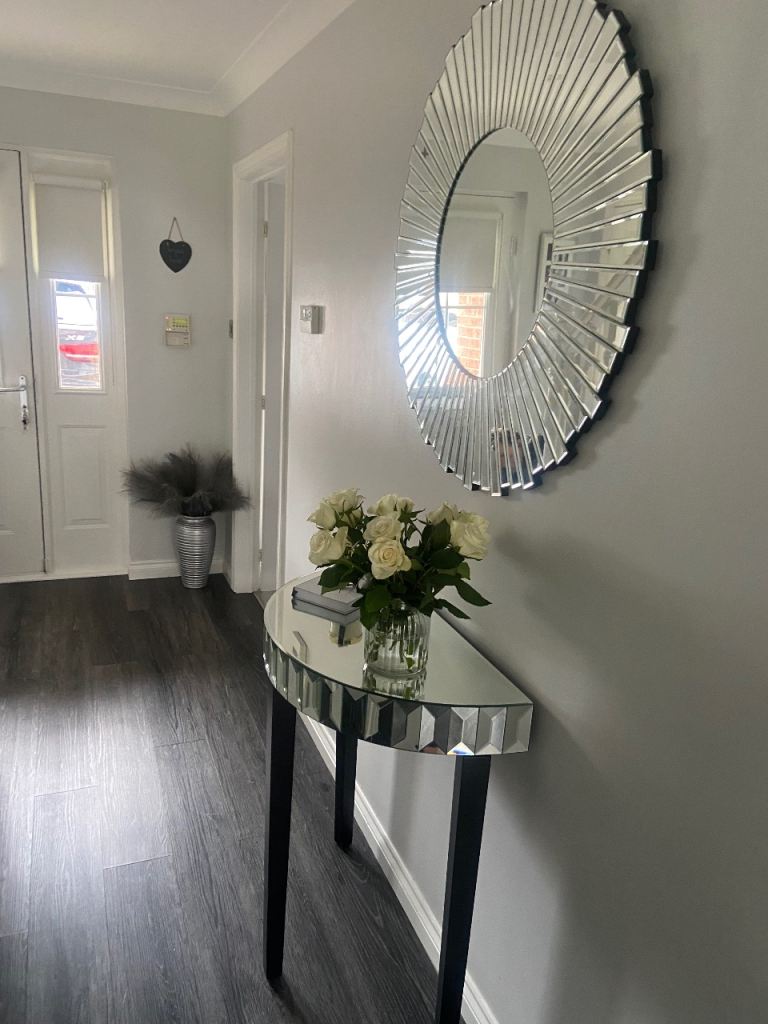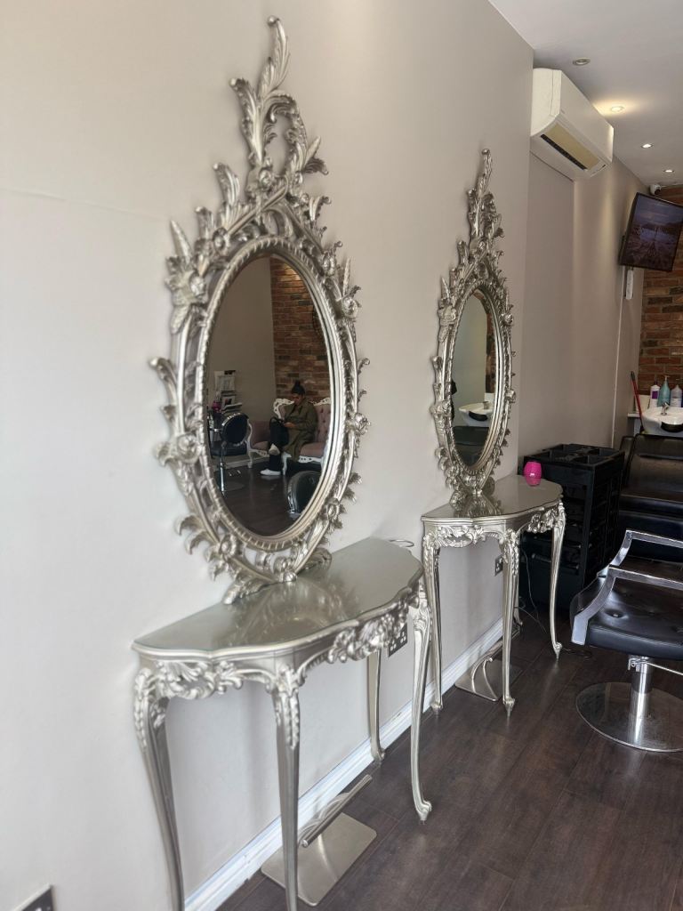 Perfect for a hair salon, beauty studio, dressing room, hallway, or living space. The mirror and console together create a very stylish and elegant look.