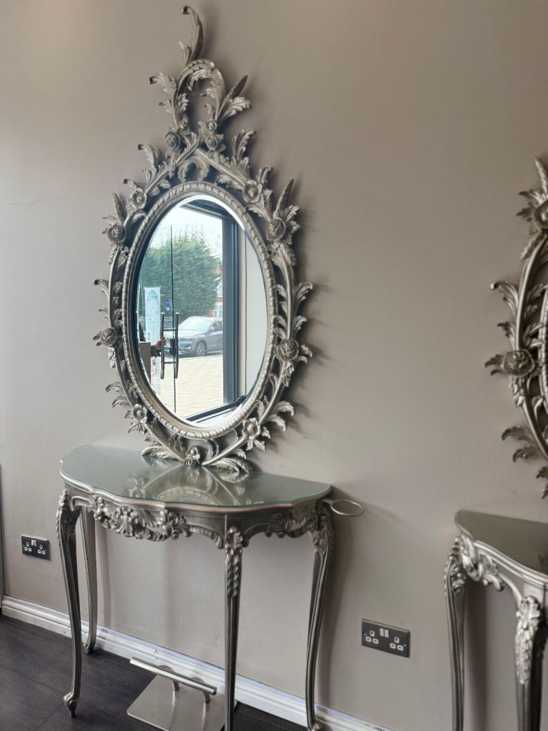 Luxury Silver Console Table & Mirror Set – Vintage Style