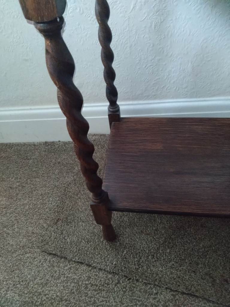 Rectangular oak side table.56 cm x 41 cm. Height 73 cm. Very pretty legs.