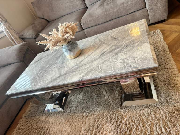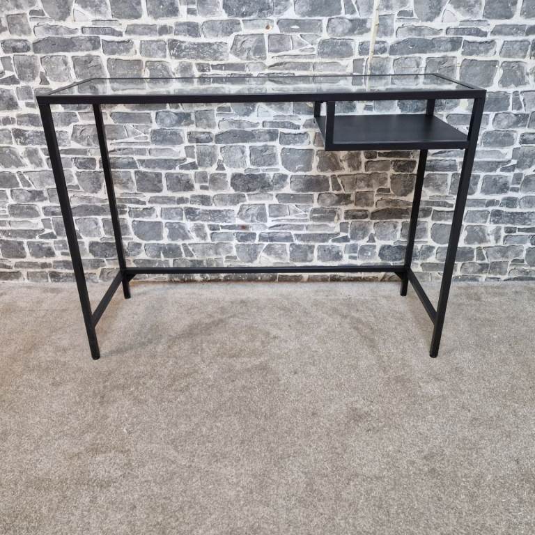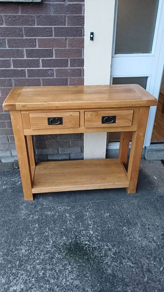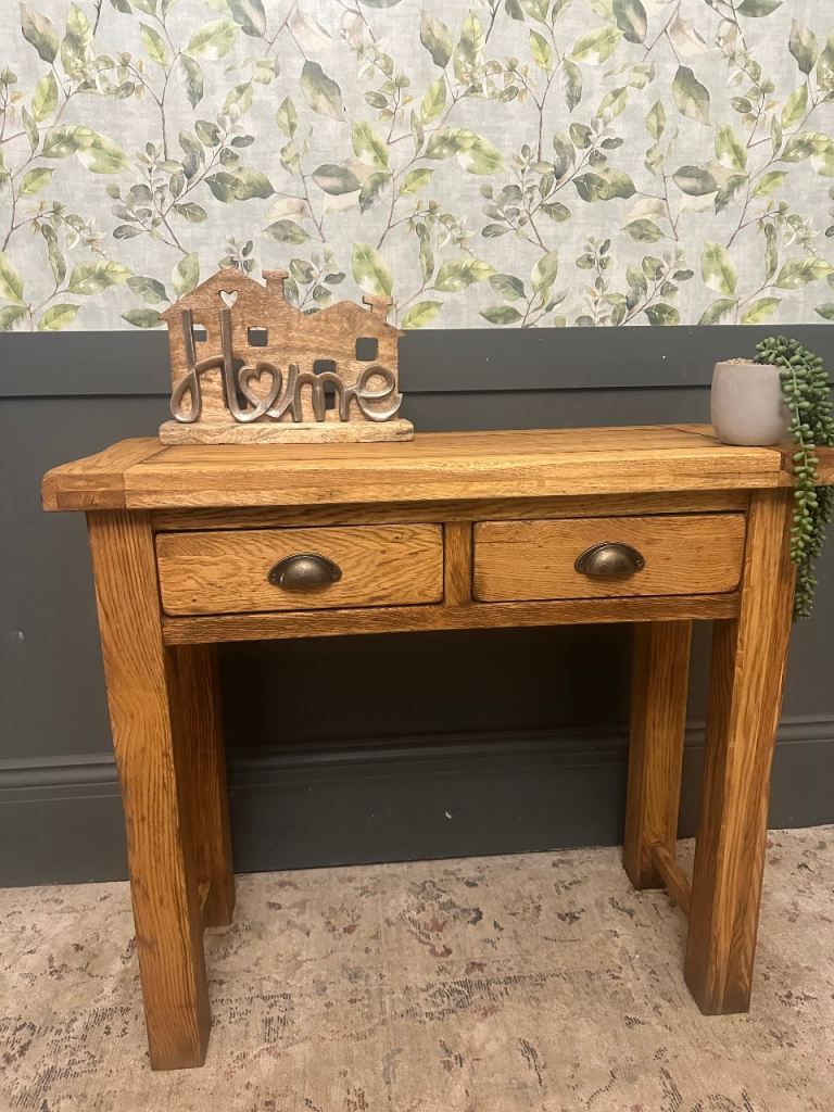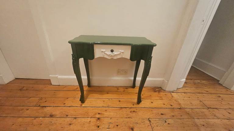 This lovely console table from M&S was rescued after being damaged on the two drawer fronts. It was heading for landfill so it was saved by adding black vinyl to the drawer fronts giving it a new look and a second chance.