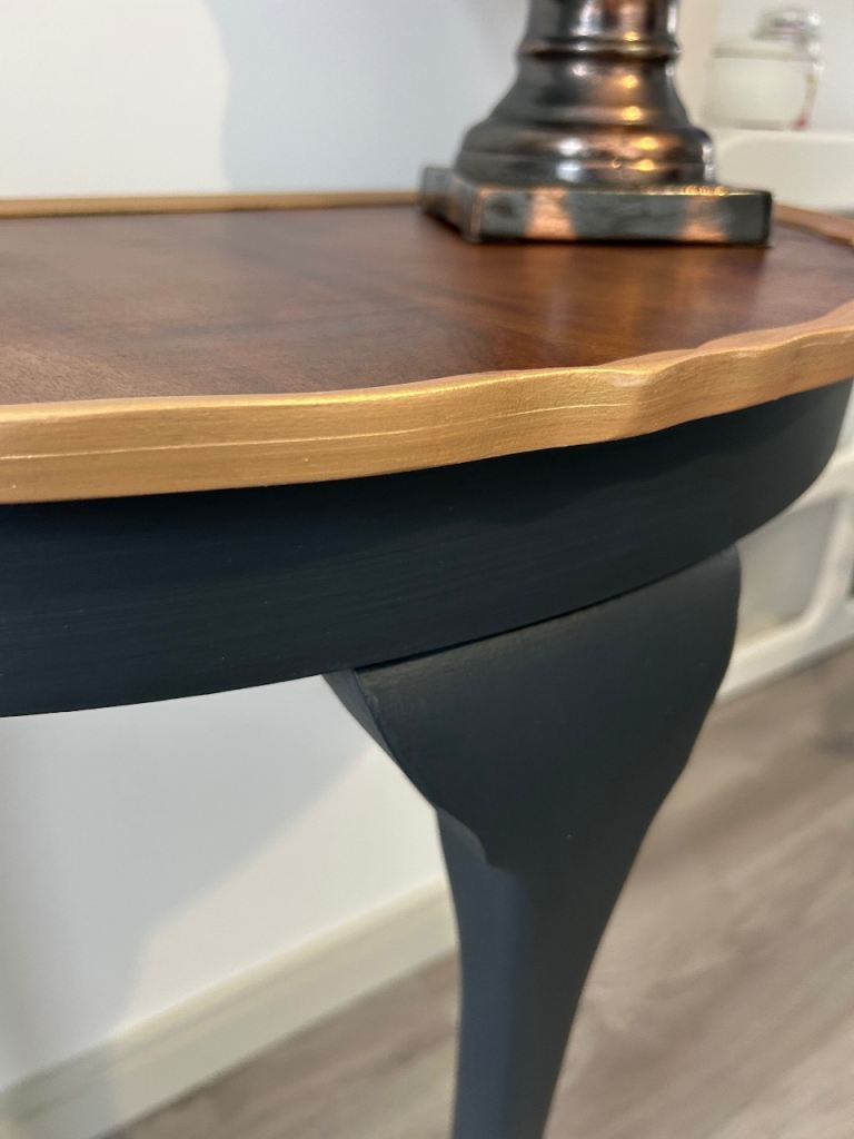 The wooden top has been refinished and sealed with Osmo Polyx Oil, providing a durable, moisture-resistant, satin finish while retaining the warmth and character of the wood grain. The base has been carefully painted in a deep, classic tone, creating a refined and timeless look.