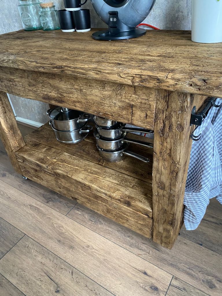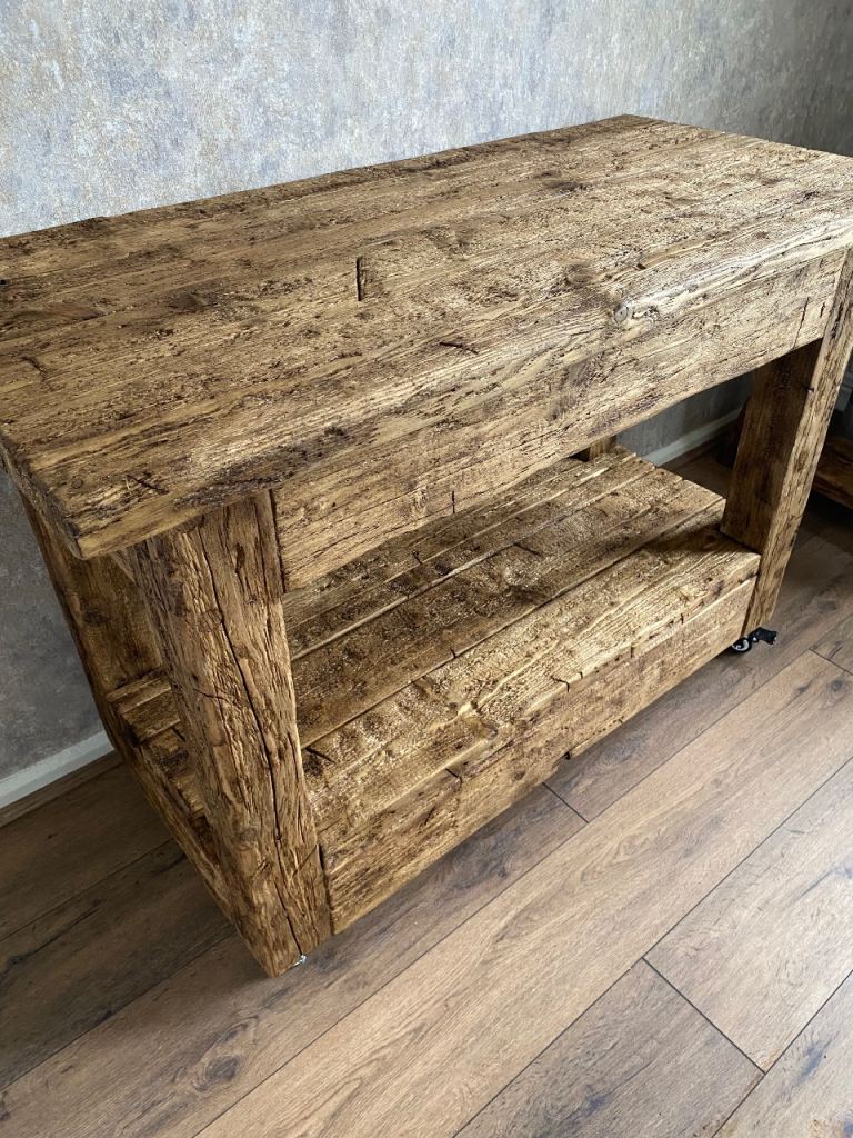 Good condition with natural rustic character and minor wear, exactly as you'd expect from reclaimed timber. Size is 1220 mm long and 585 mm wide and 840 mm tall
